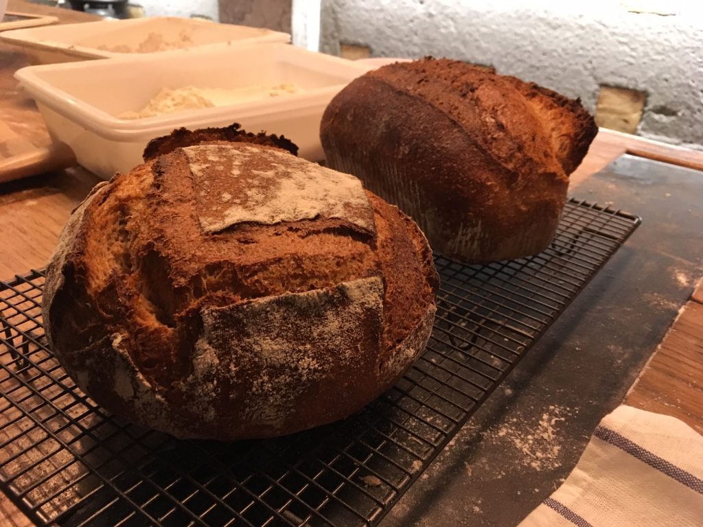 Hemos vuelto al txoko de Basquery, esta vez para marcarnos unos panes integrales, de espelta y centeno. El de espelta lo hemos hecho de principio a fin, horneando los panes del tremendo grupo en el obrador de Basquery, y los míos en mi horno, que me acompaña allá donde voy.